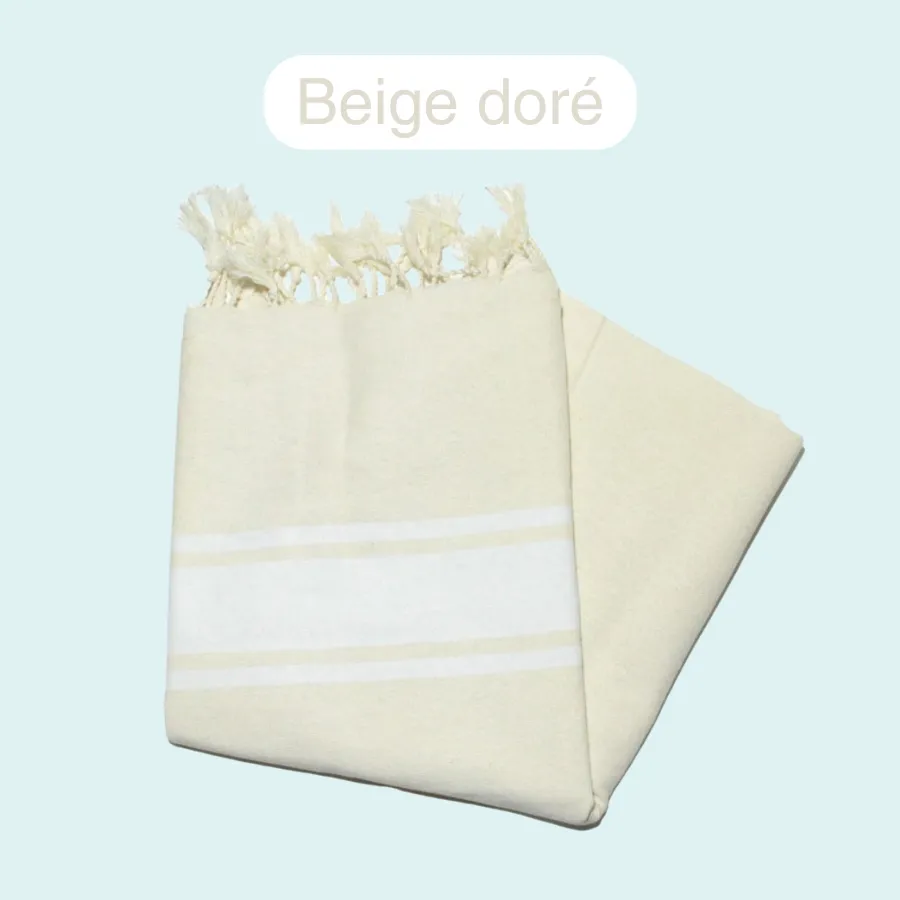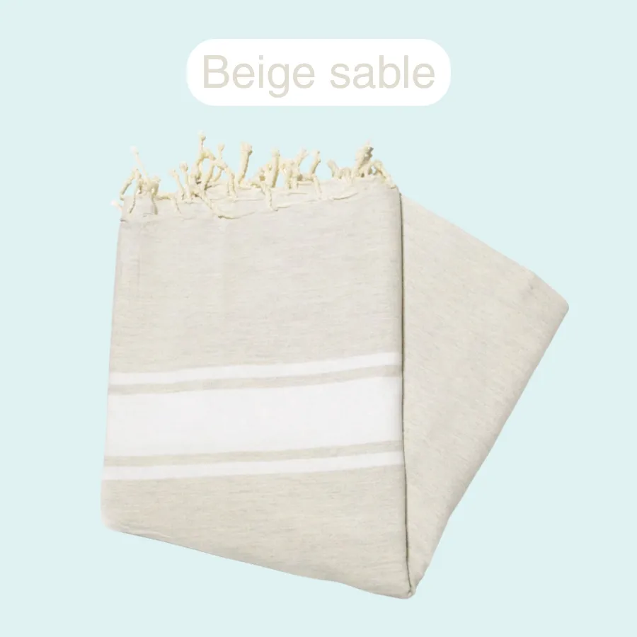 Tissée dans un coton doux et absorbant, j’offre une surface généreuse de 1 mètre x 2 mètres pour vous envelopper confortablement après un bain revigorant dans l’océan ou une session de soins marins.