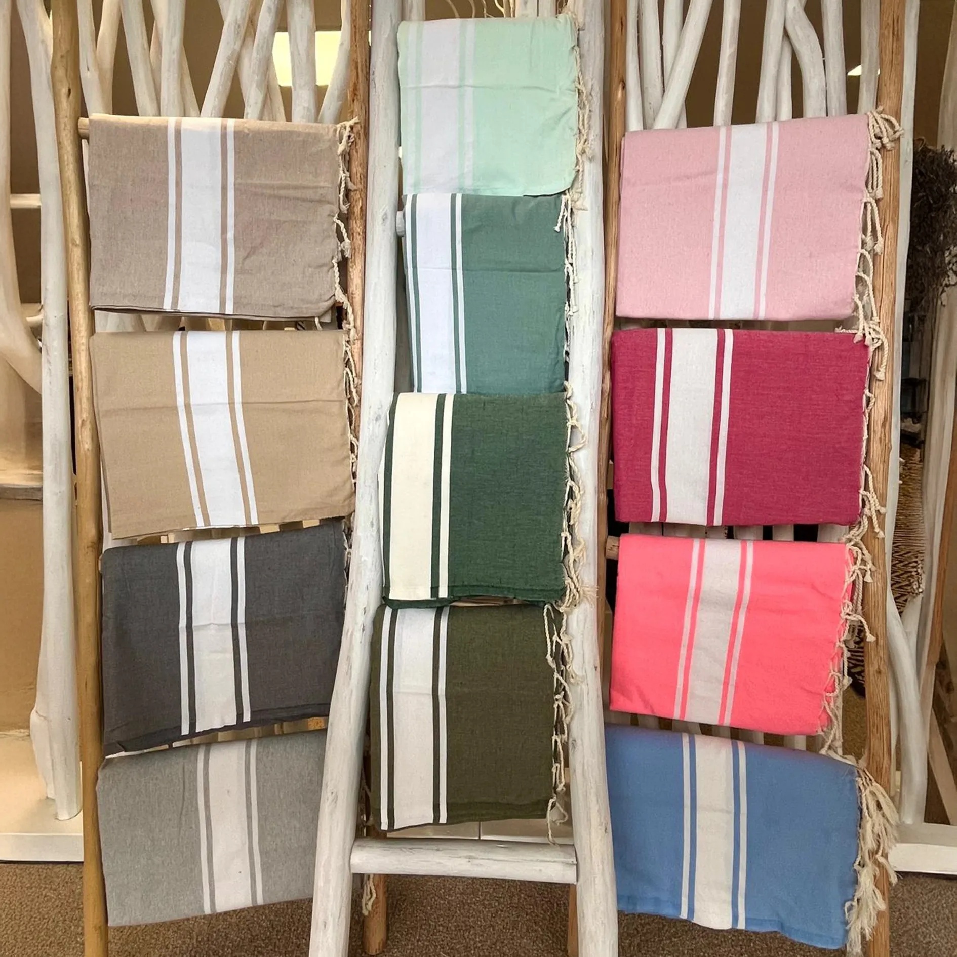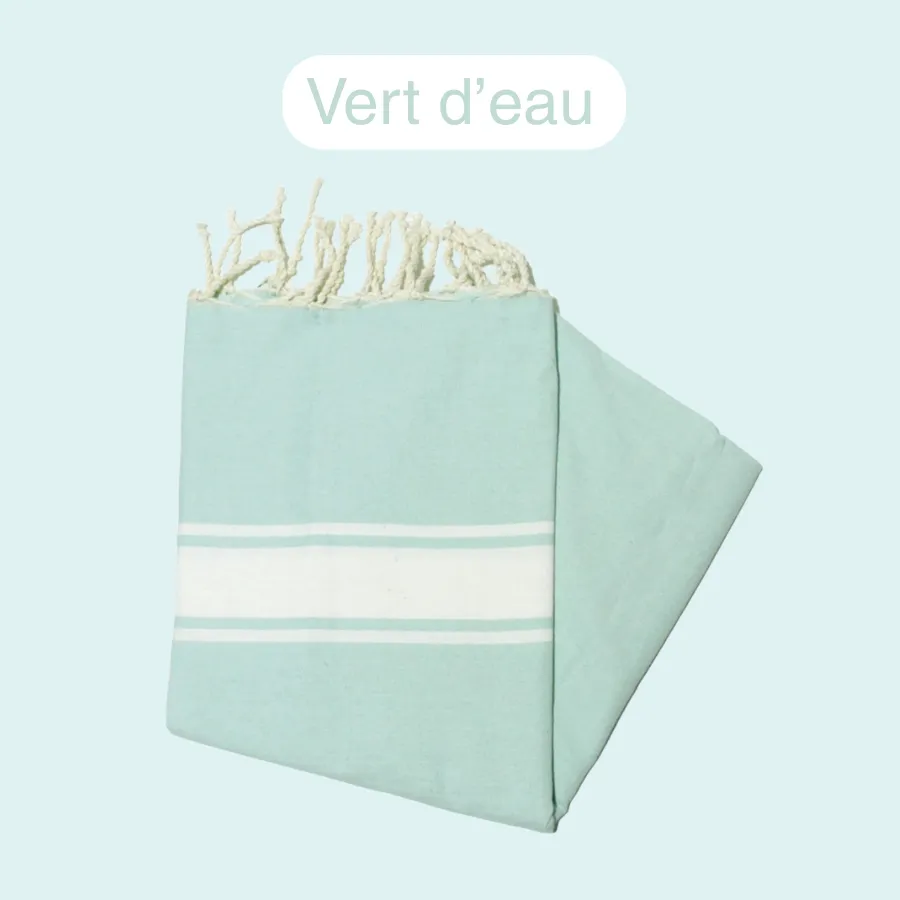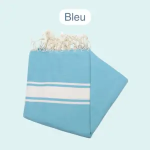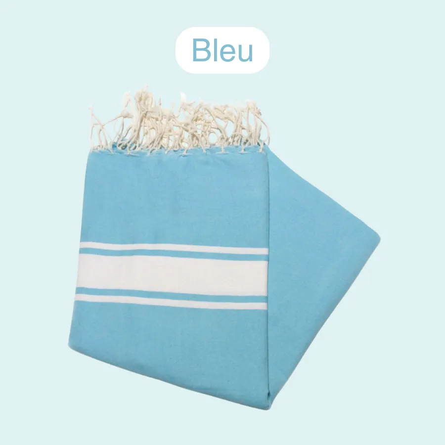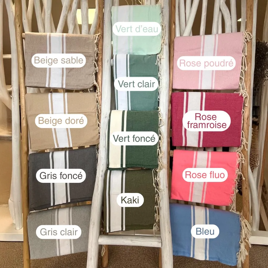 Je suis votre Fouta colorée, la serviette de plage par excellence qui vous accompagnera dans toutes vos escapades avec légèreté et style.
