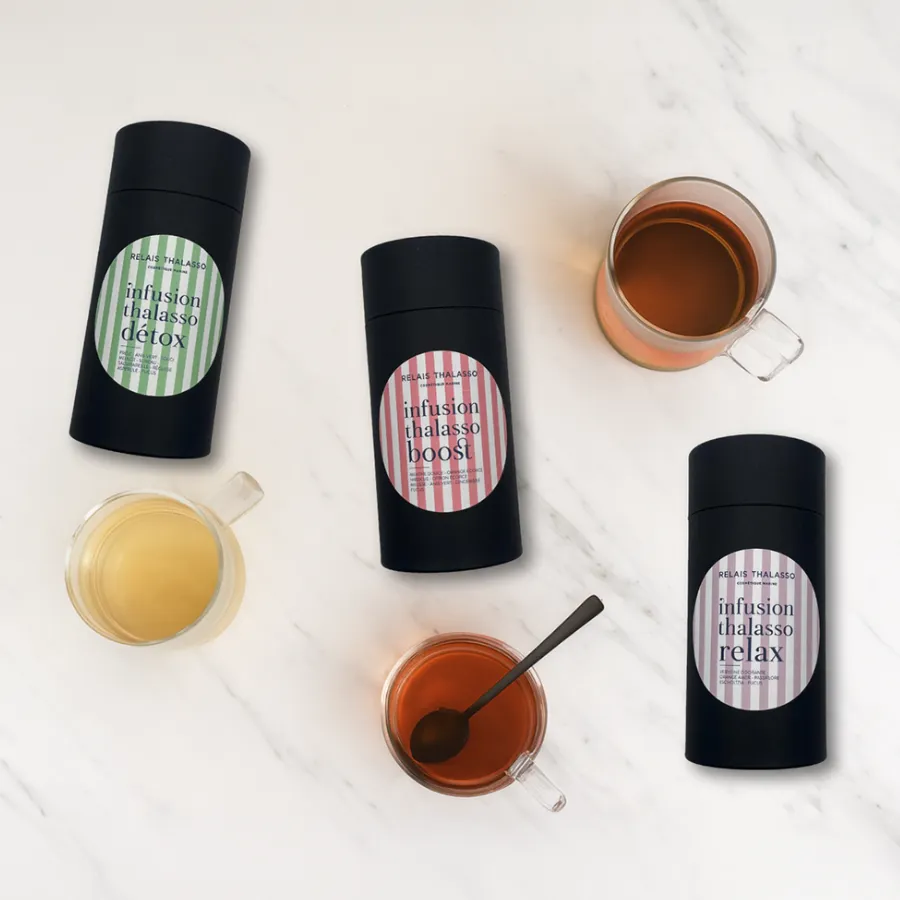 Je suis l’Infusion Thalasso Détox, votre alliée quotidienne qui agit pour vous offrir une sensation de légèreté comparable à une promenade sur une plage libérée de toute tension.